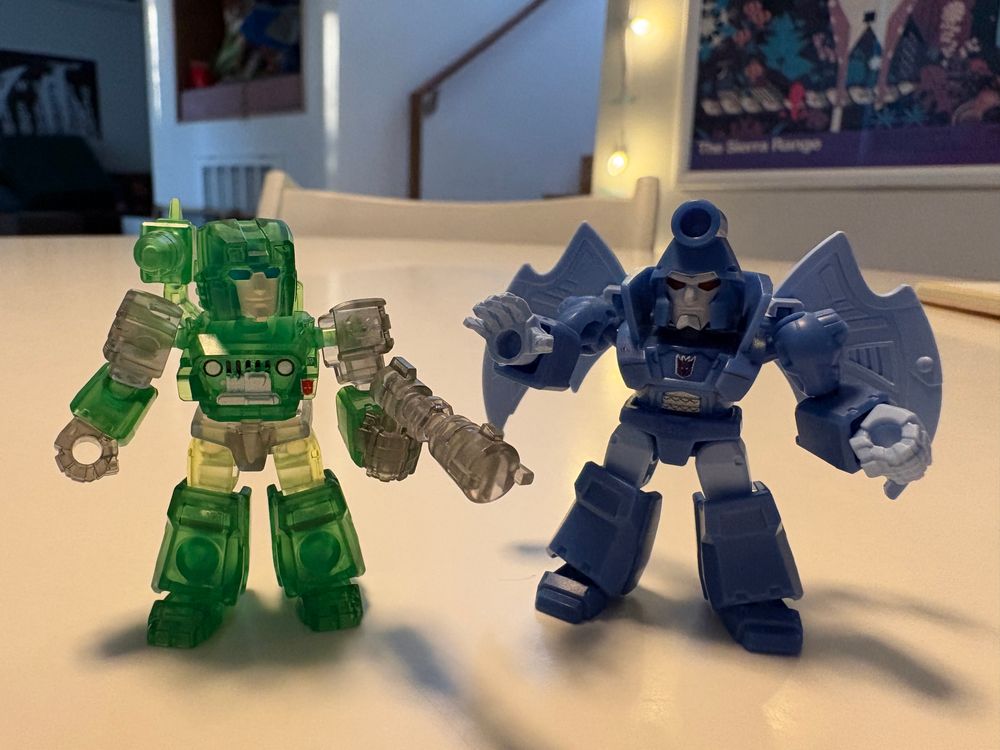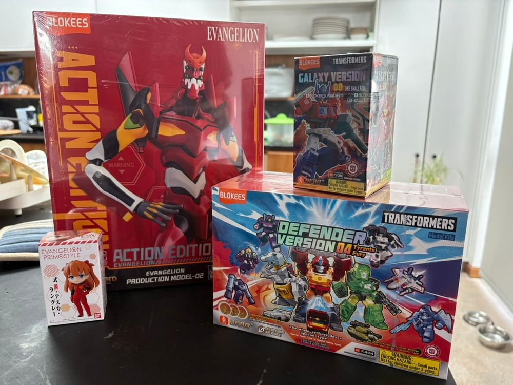 Got some new toys this weekend. The box of Defenders was actually in my car for a while, but at one point we had 15 new toy robots in the boot.