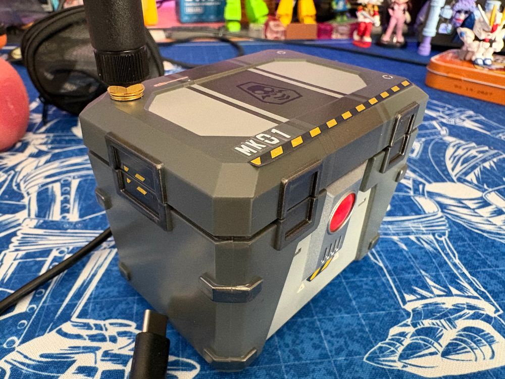 Data Crate MK-I - room for 32 GB of ebooks, text files and PDFs, along with a WiFi, web server, a forum, search, file upload and download, all in repurposed Fortnite blind box packaging.