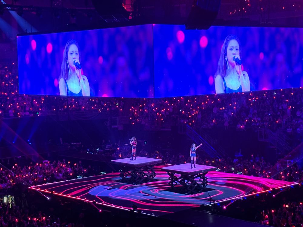 Members of Twice, singing “Take Down” from Kpop Demon Hunters